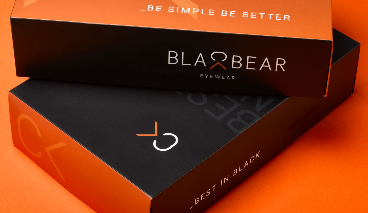 ¿Cómo creamos un packaging para enviar las gafas a los ópticos y que a la vez sirva como display publicitario en el punto de venta? Diseñamos 4 modelos de cajas de automontaje de tapa y base, con los dos colores corporativos, el negro y el naranja, que permiten hacer diferentes composiciones en el escaparate.